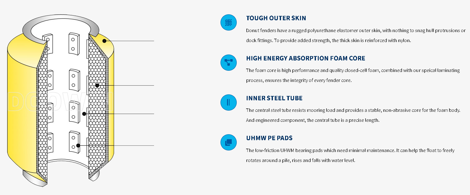 Unsinkable Marine Foam Filled Fenders 5m-24m Ocean Guard Donut Fender Images |